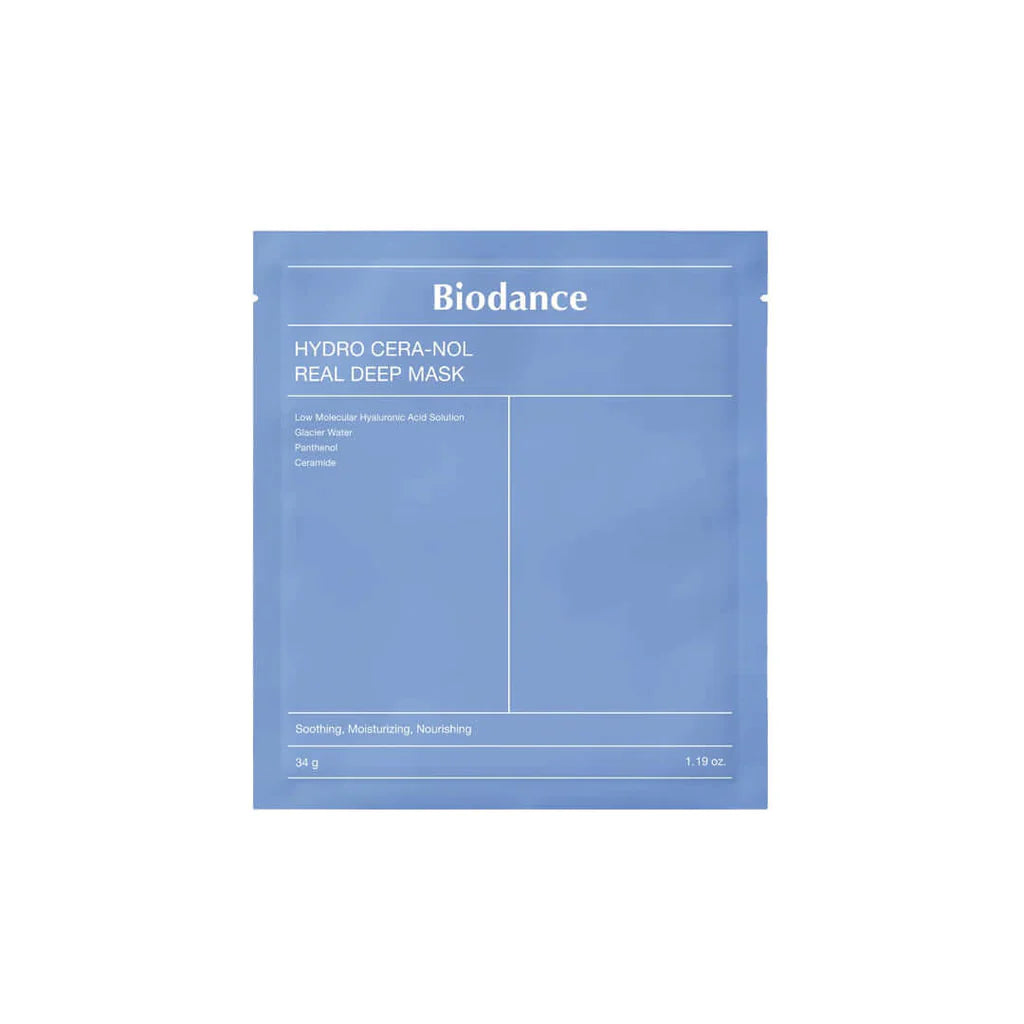 BIODANCE Hydro Cera-nol Real Deep Mask – tai inovatyvi hidrogelio veido kaukė, sukurta giliai drėkinti, raminti ir stiprinti odos apsauginį barjerą. Kiekviena kaukė pagaminta iš koncentruoto serumo, kuris, veikiant odos šilumai, tampa permatomas, leisdamas veikliosioms medžiagoms efektyviai įsigerti į gilesnius odos sluoksnius. Idealiai tinka jautriai, sausai ar sudirgusiai odai, ypač po saulės poveikio ar esant dehidratacijai.